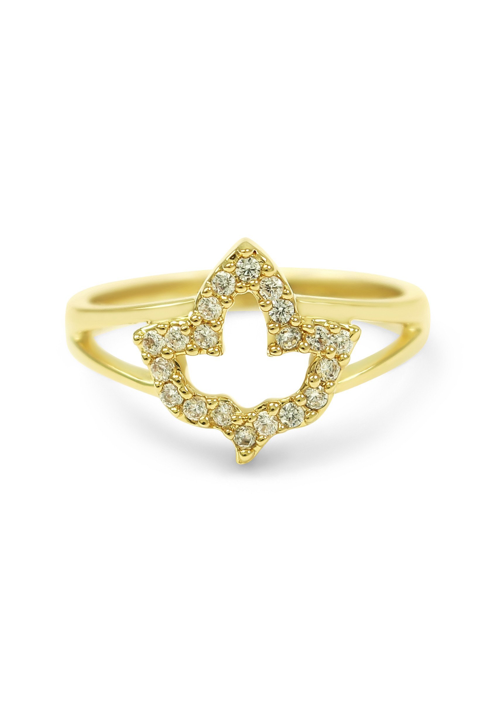 14K Gold Plated Ivy Leaf Ring With CZS